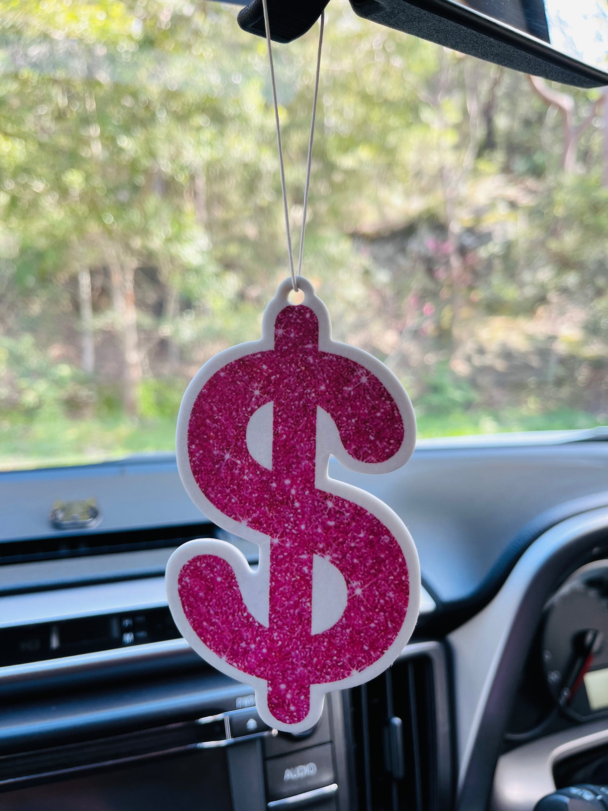 Add a touch of glam and luxury to your car with our Pink Glitter Dollar Sign Car Air Freshener! This dazzling design combines the iconic dollar sign with a vibrant pink glitter finish, making your car interior feel like a million bucks.