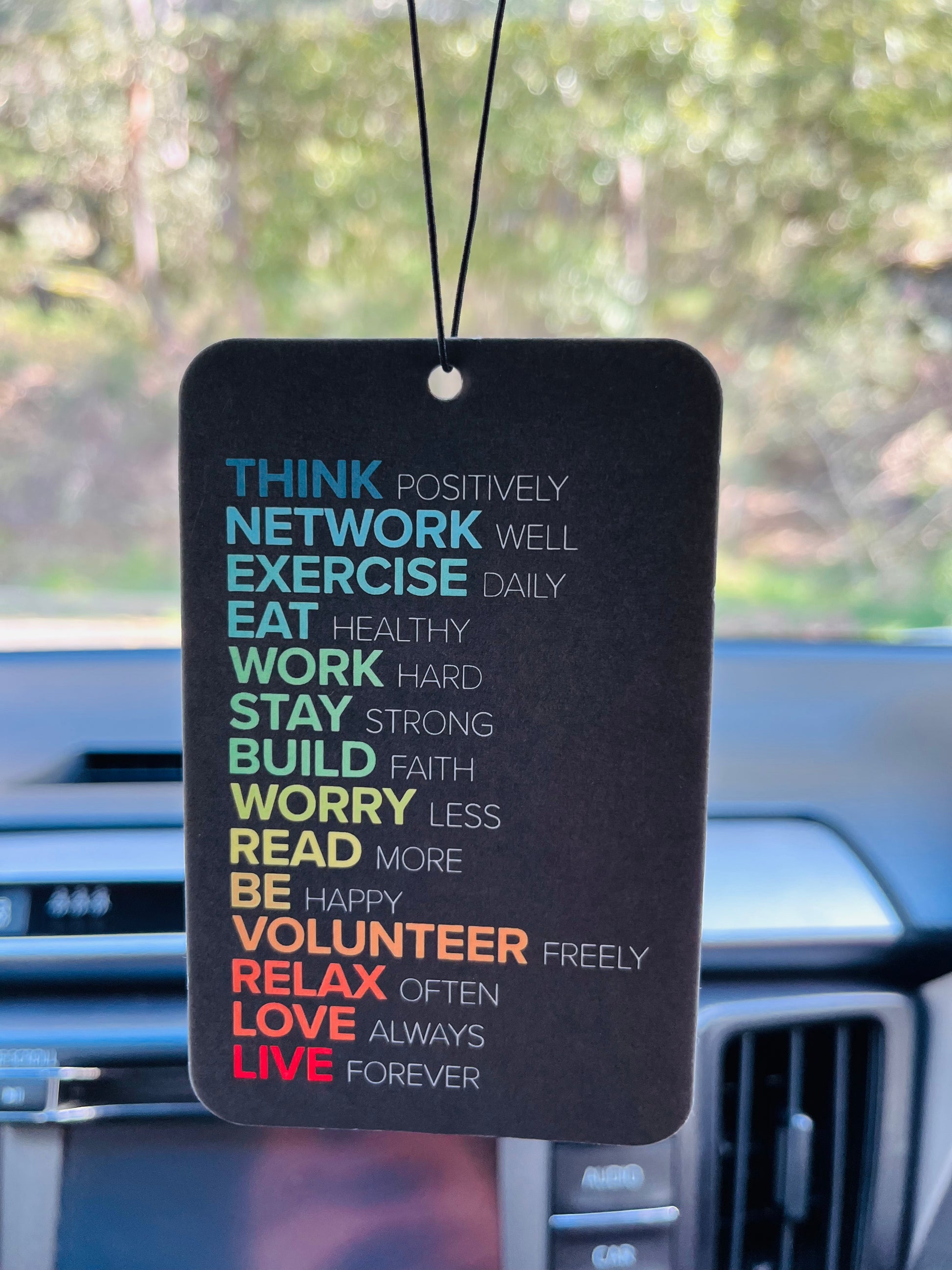 Elevate your car’s ambiance with a touch of positivity and a refreshing scent. Order your Inspirational Quote Car Air Freshener today and drive with a smile and a motivated mindset on every journey!