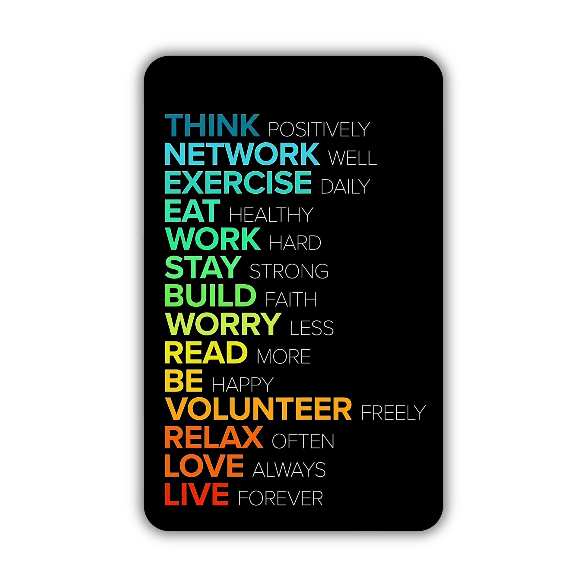 - Motivational Design: Displays an array of inspiring words and phrases such as "Think Positively," "Exercise Daily," "Stay Strong," and more, set against a sleek black background with a colorful gradient text.